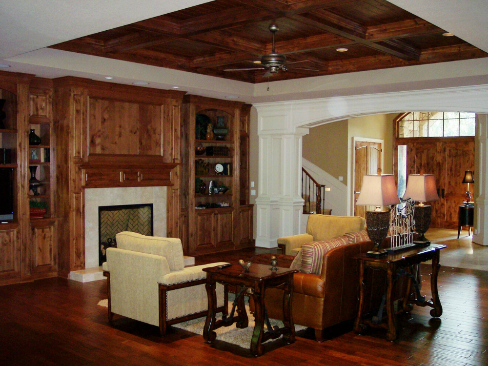 Inside, the home continues to showcase Skreen Construction’s commitment to "functional artistry" and high-end finishes. The open-concept living area is anchored by a towering stone fireplace that mirrors the exterior masonry, complemented by rich hardwood flooring and custom-milled wood ceilings that add a sense of timeless warmth. From the gourmet kitchen with its artisan-crafted cabinetry to the spa-like bathrooms featuring precision tilework, every detail of the Cherry Lane project was executed with the "detailed touch" that defines a true legacy home.